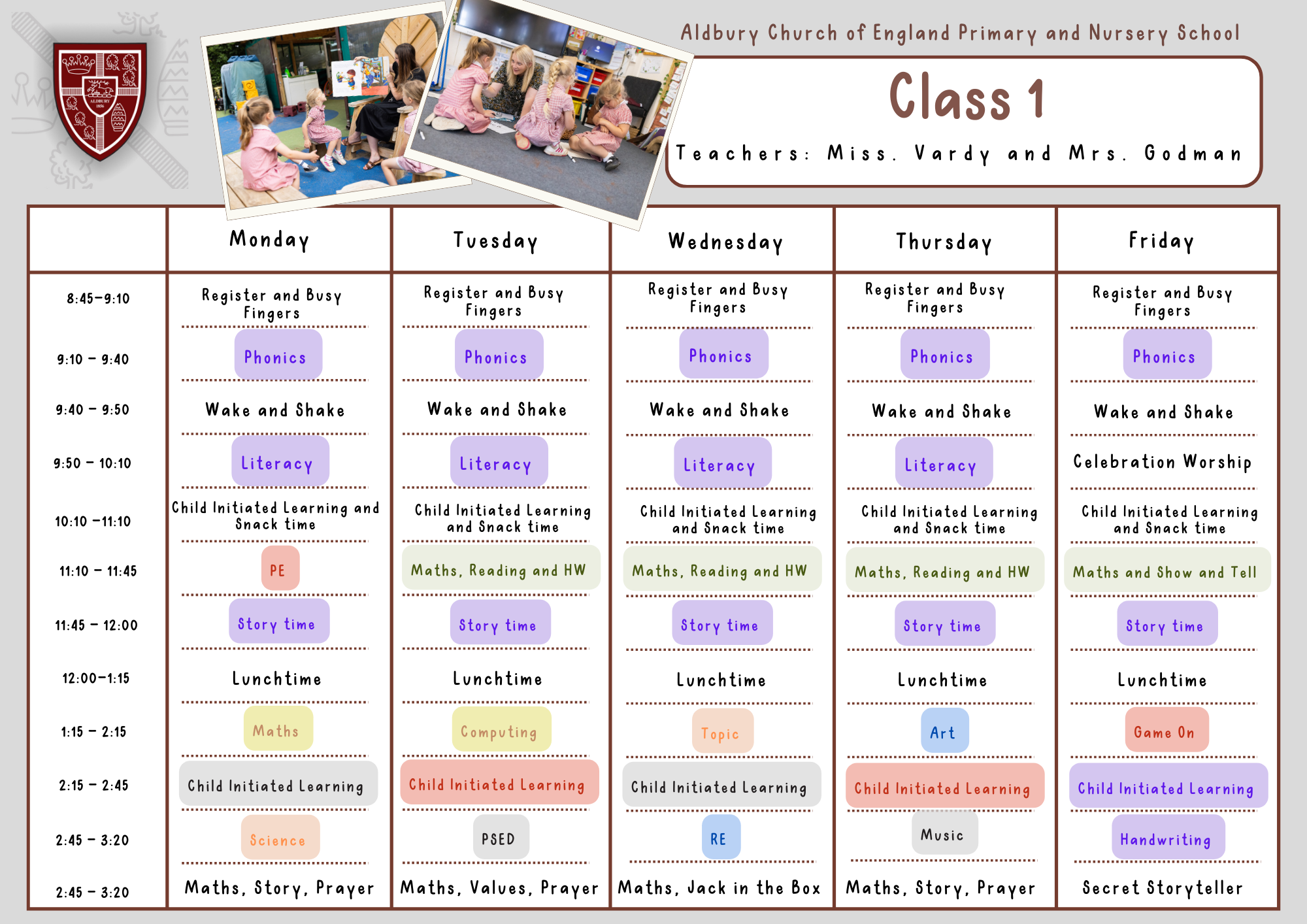 We are Mrs Godman and Miss Vardy and have been the early years team at Aldbury for 7 years. We are lucky to have the support of Miss Shepherd and Mrs Janes this year.
