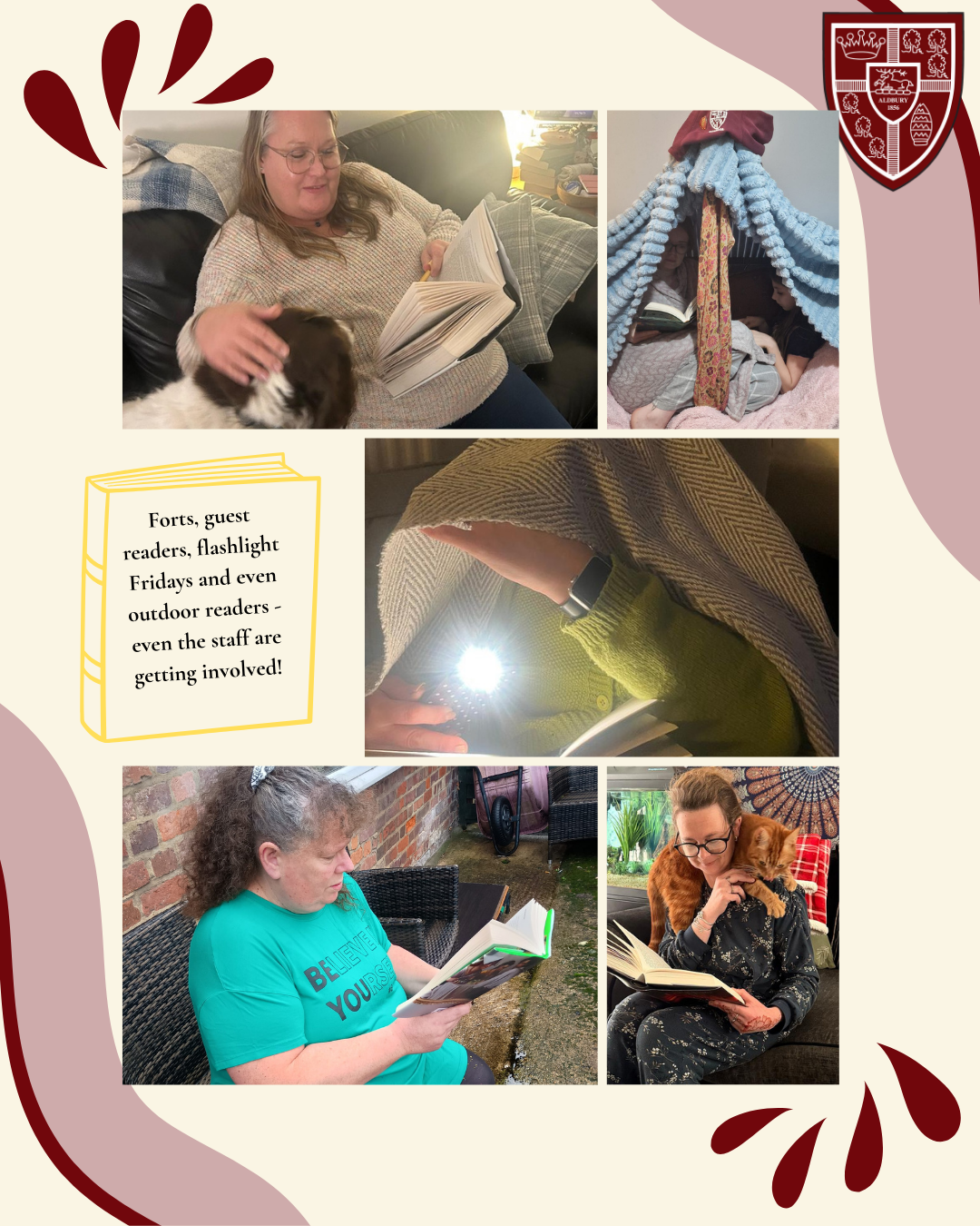 We are also delighted to see the staff team getting involved! See if you can spot some familiar faces reading in forts, with their pets, or even braving the outdoors with a good book. 🐾 🔦