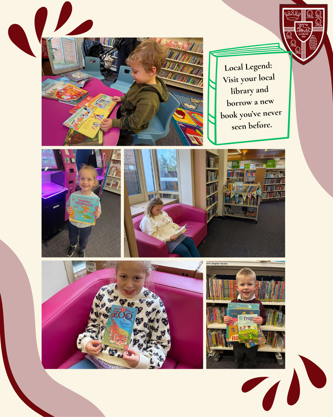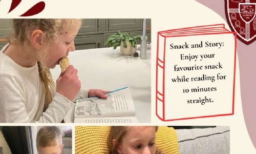 These latest photos highlight our 'Local Legends' visiting the library, the very popular 'Snack and Story' challenge, and pupils creatively matching book covers to their House colours. It is fantastic to see the children exploring their local community and their own bookshelves with such enthusiasm.