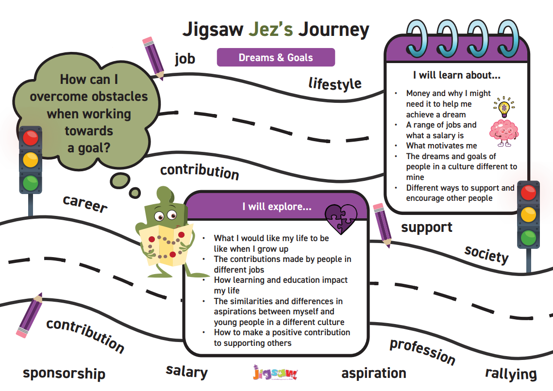 In the unit Dreams and Goals the children will learn about the practicalities of achieving their aspirations, including the understanding that money is often needed to fulfill certain dreams. They explore various careers and professions, noting that different jobs provide different salaries. A major focus is placed on global citizenship, as children compare their own dreams with those of people from different cultures. They reflect on how they can make a positive contribution to support others both locally and abroad. Key terms introduced include salary, aspiration, culture, and contribution.